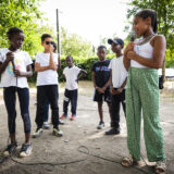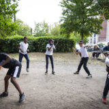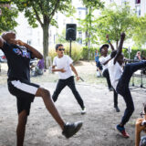 A l’occasion des Novolympics de Banlieues Bleues et dans le cadre des « Hors les Murs » de la Maison pour Tous Youri-Gagarine, des enfants de la Cité des Fleurs de La Courneuve ont été initiés à l’écriture, à l’improvisation et à l’interprétation de leurs textes, dans le cadre d‘un projet intitulé Summer Krump.