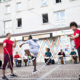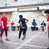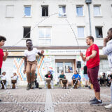 Des membres du centre social Germaine-Tillion et du centre social et culturel Maroc Châtenay Poètes ont travaillé avec le collectif de double-dutch Koezion Jump, et avec le percussionniste Fabe Beaurel Bambi.