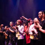 C’était la « cocréation » du 41e festival Banlieues Bleues, un spectacle hors-normes imaginé par le musicien et performeur congolais Lova Lova, créé et interprété sur la scène de l’Espace 93 avec des dizaines d’habitant·es de Clichy-sous-Bois. Une aventure intergénérationnelle qui a réuni des écoliers, des collégiens, un club de judo et plusieurs associations autour de la musique (chant, percussions MAO), de la performance, de la création de mode et de vidéo, et qui restera longtemps dans les têtes des participant·es, comme certain·es en ont témoigné à Grégoire Remund, journaliste pour Seine-Saint-Denis, le magazine du Département.
