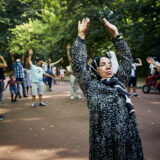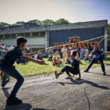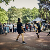 Le mariage du sport – ici le saut à la corde réinventé dans le Bronx – et du beat-box, coaché par le chorégraphe Nidal Abdo et le rappeur Osloob, pour une déambulation participative dans le Parc départemental Georges-Valbon